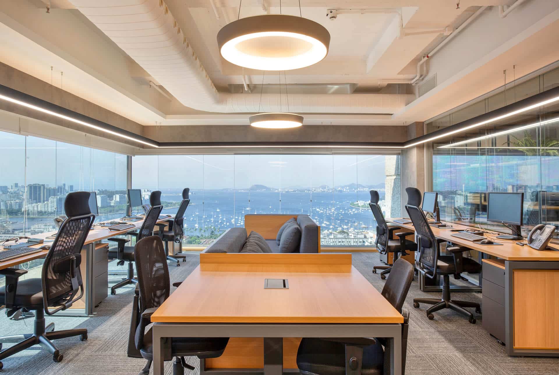 Espaços inteligentes que integram design, tecnologia e produtividade. Projetos executados com acabamento fino para criar ambientes de trabalho funcionais e inspiradores